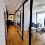 משרד בקומה גבוהה עם נוף מרהיב לעיר ולים! חלוקה לאזור קבלה, חדר ישיבות, 4 חדרים (1 מתוכם חדר מנכ"ל), אופן ספייס סגור של 6 עמדות ומטבחון.