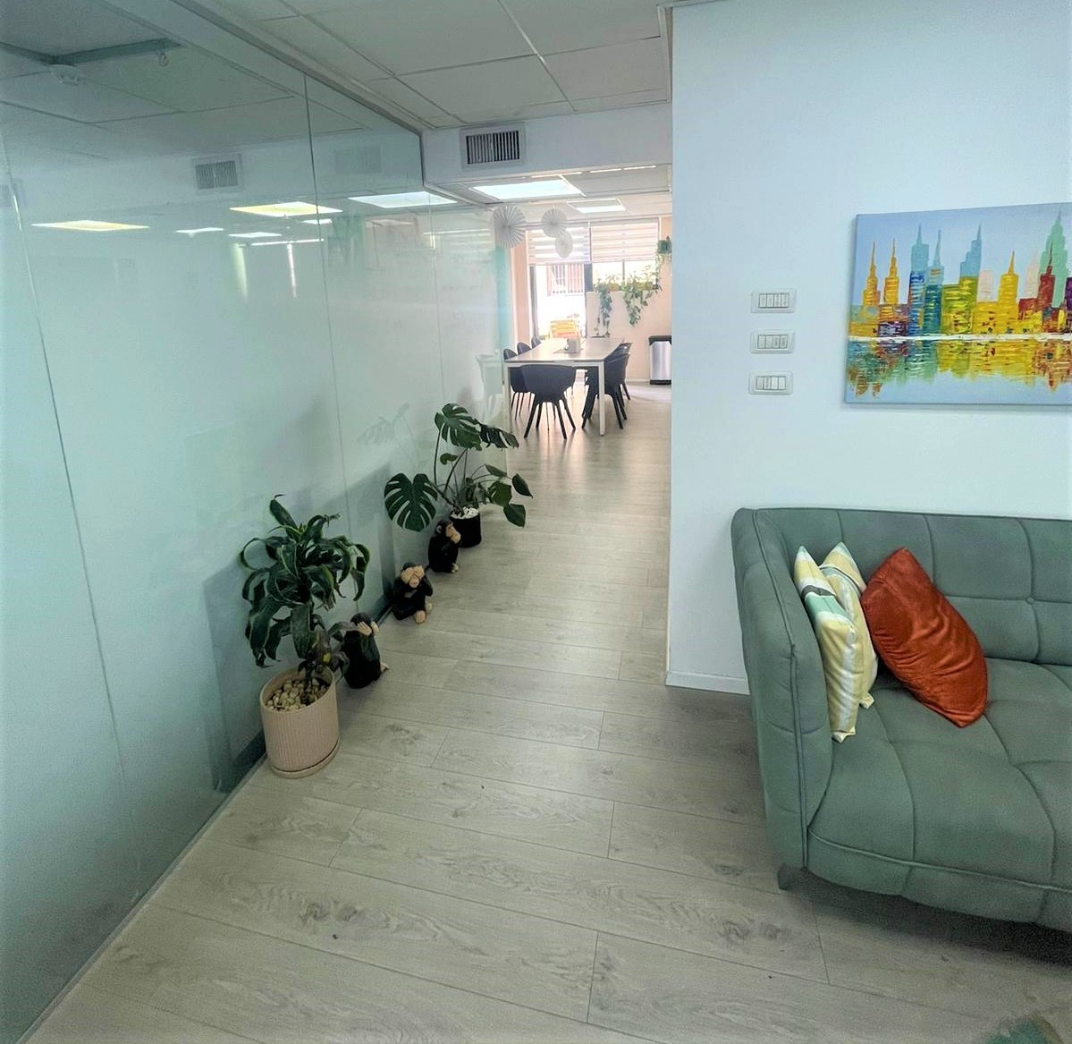 300 מר משרדים עם מרפסת ממש צמוד לרכבת עזריאלי/ השלום! משרד בגמר נעים ומוכן לכניסה מיידית! המשרד מחולק לשמונה חדרי עבודה ועוד שלושה חדרי ישיבות מרווחים, פינת קבלה ומטבחון והכי חשוב, מרפסת פרטית ענקית של 80 מר! וחניות בבניין!
